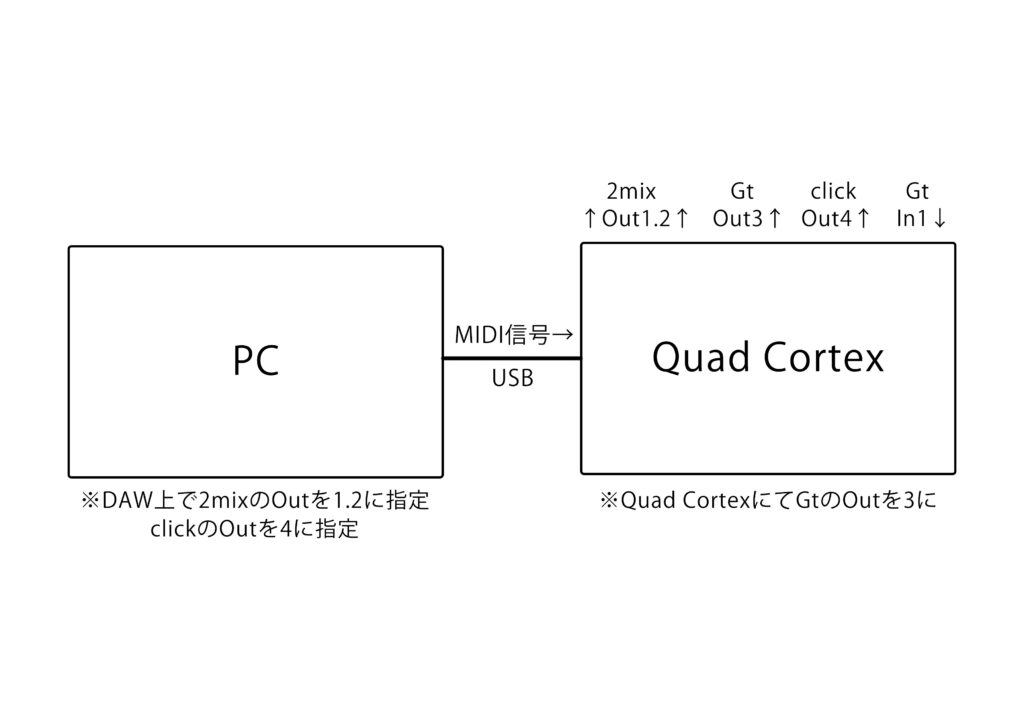 Quad Cortexをオーディオインターフェースとしてライブ活用するメリットとしてはオーディオ出しするPCの他にインターフェースをセッティング、持ち込みする手間が省けるところですかね。